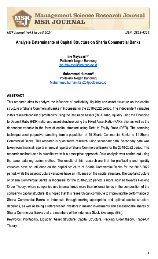 Analysis Determinants of Capital Structure on Sharia Commercial Banks