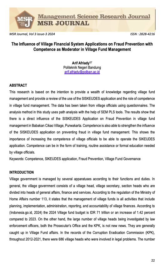The Influence of Village Financial System Applications on Fraud Prevention with Competence as Moderator in Village Fund Management