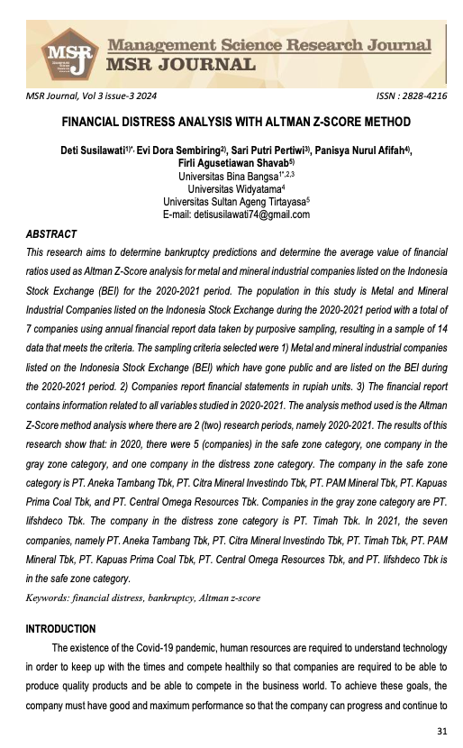 FINANCIAL DISTRESS ANALYSIS WITH ALTMAN Z-SCORE METHOD
