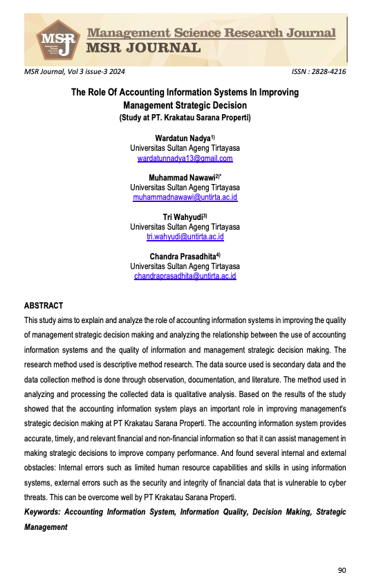 The Role Of Accounting Information Systems In Improving Management Strategic Decision