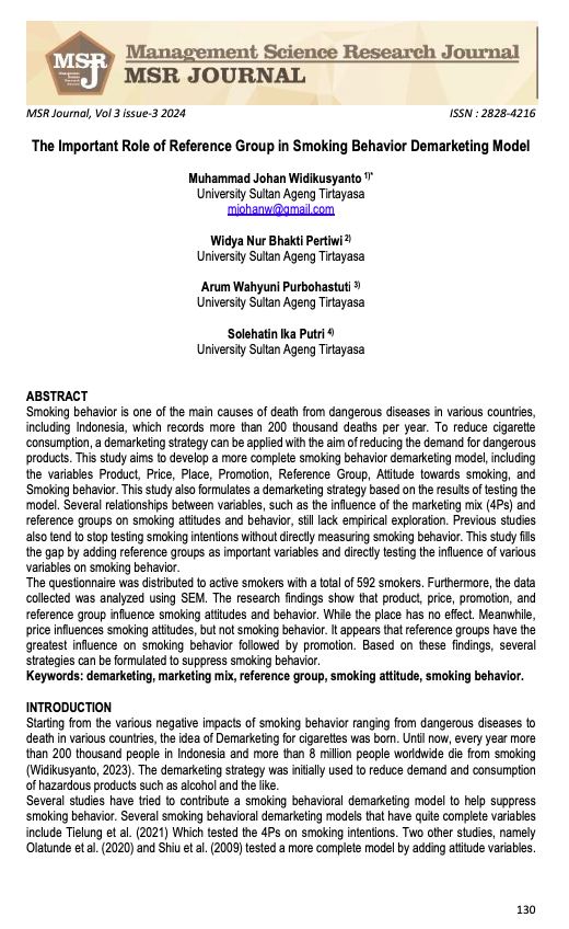 The Important Role of Reference Group in Smoking Behavior Demarketing Model
